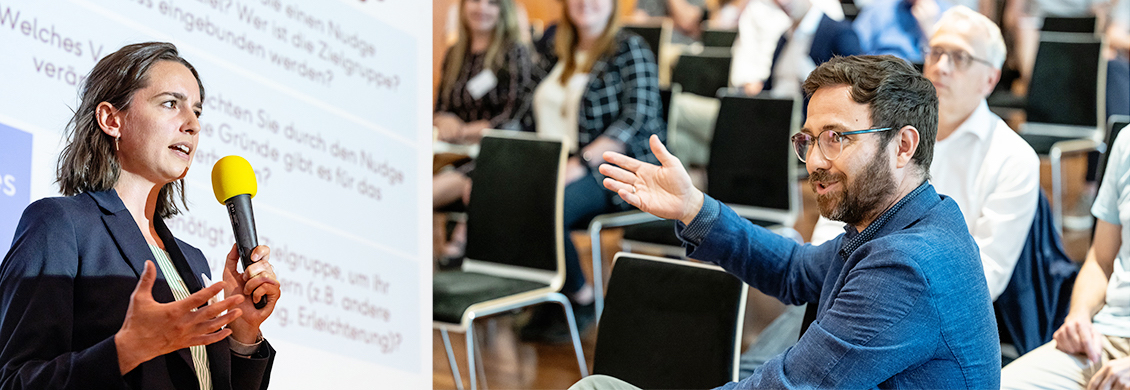 What do successful 'green' nudges look like? How do nudges work? How much CO2 can they save? And under what conditions are nudges particularly successful? ConPolicy project manager Marlene Münsch and project manager Dr. Julius Rauber answered these and other questions in their presentations at the closing event, emphasizing that changing default settings and making information visible are particularly successful in nudging.